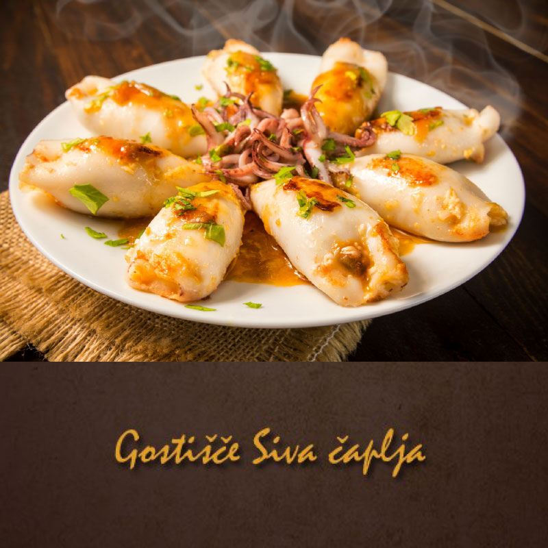 Plošča vsebuje: • lignje pariške • lignje polnjene • lignje tržaške • več vrst prilog.