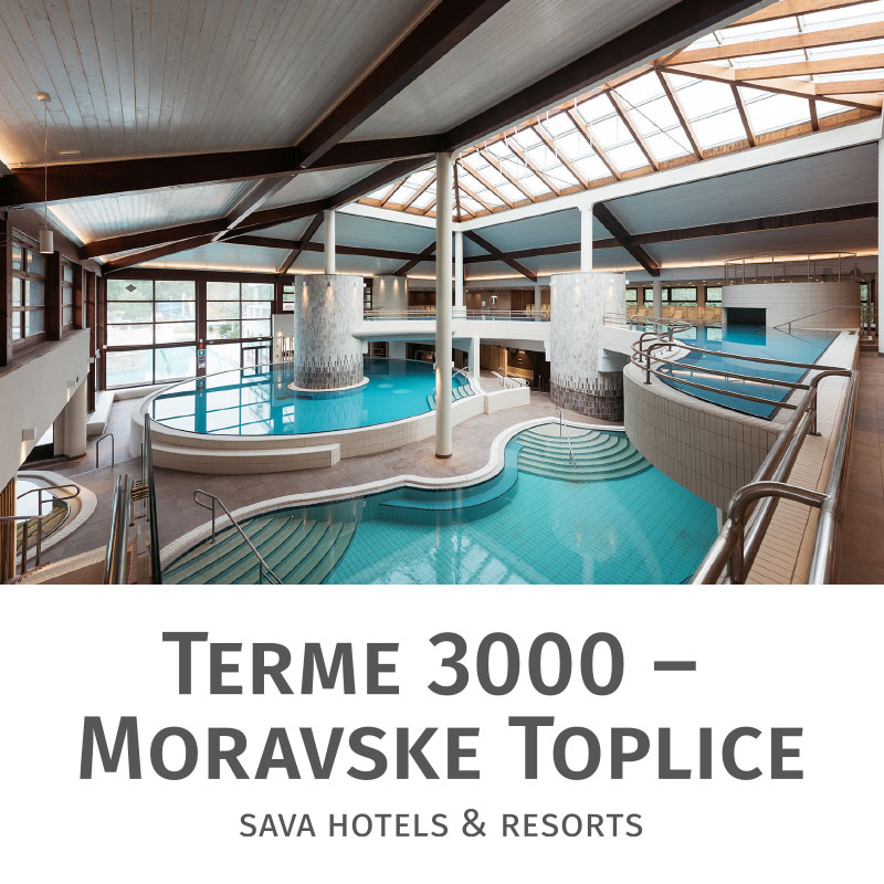 Doživite Moravske Toplice ... Lahko se sprostite v wellnessu, ste razigrani v vodnem svetu, aktivni na kolesu po prečudoviti naravi ali pa odigrate igro golfa na najdaljšem igralnem polju v Sloveniji. V Termah 3000 lahko izbirate med različnimi namestitvami možnostmi: trije hoteli, apartmajsko naselje, bungalovi in kamp.