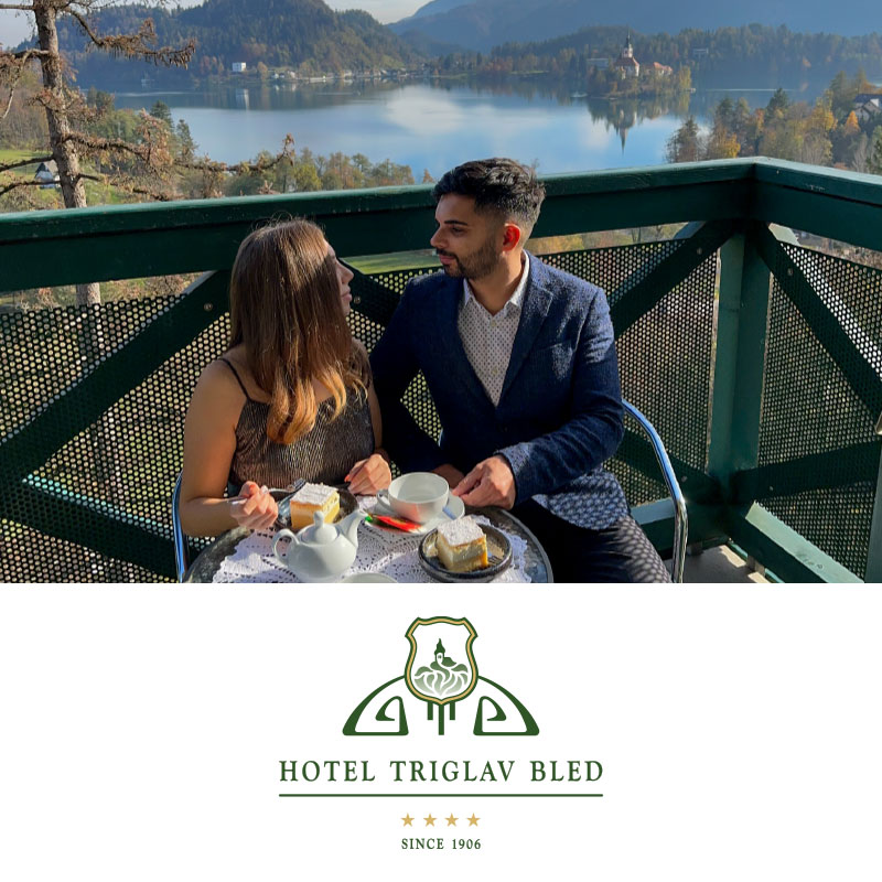 Preživita 2 čudovita romantična dneva v starinskem hotelu Triglav na Bledu, z zagotovo najlepšim pogledom na jezero in otoček. Hotelska restavracija ponuja enako čudovit pogled. Ponudba obsega: • 1 x nočitev za dve osebi v dvoposteljni sobi s pogledom na jezero, • pijača dobrodošlice, • 1 x a la carte hotelski zajtrk, • 1 x popoldanska kava ali čaj in sladica, • neomejen vstop v hotelski bazen in savno, • uporaba kopalnega plašča in copat.