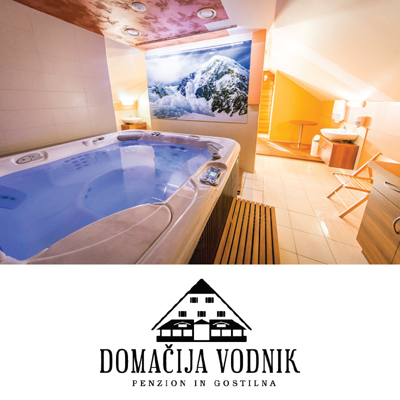 Ponudba za 2 osebi vsebuje: • 1 x nočitev v dvoposteljni sobi na Domačiji Vodnik; • 1 x zajtrk za 2 osebi; • 2 - urni VIP romantični zakup wellnessa (finska savna, jacuzzi).